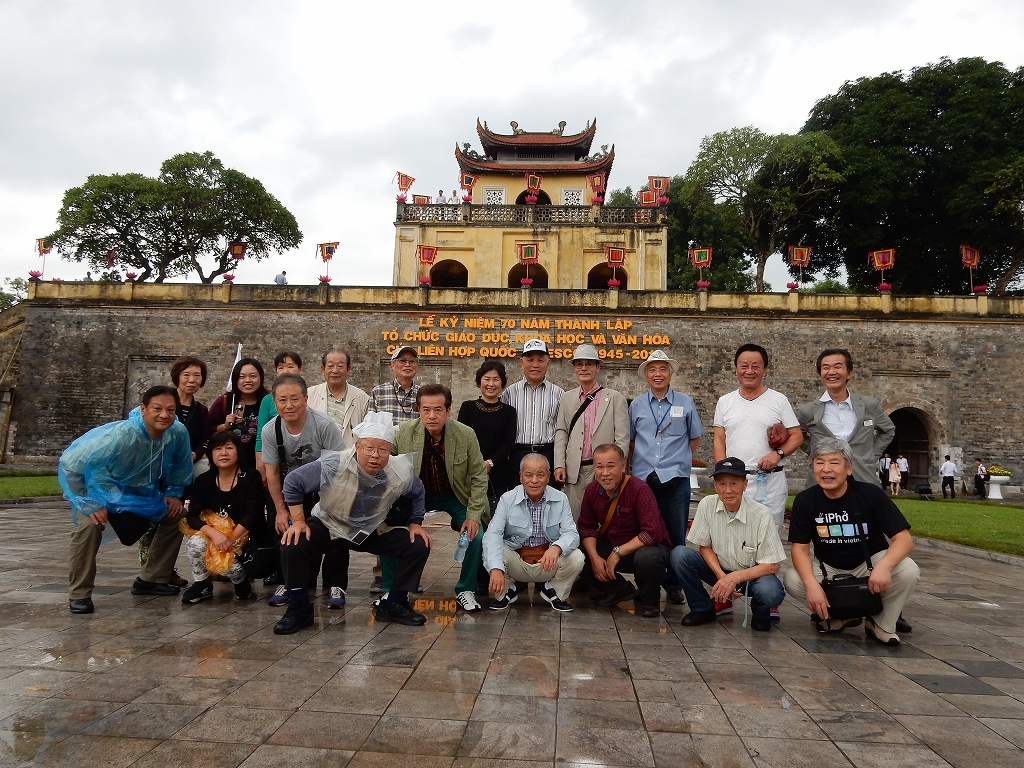 関西国際空港駅 南海電車側 改札前8:30集合=渡航説明会=搭乗ゲート集合=ベトナム航空VN331便10:30発 =4時間45分のフライト=ノイバイ国際空港(ハノイ空港新第二ターミナル)着=世界文化遺産「タンロン城」見学 =シェラトン・ハノイホテル到着=夕食「ワイルドロータス」創作ベトナム料理=ホテル |
