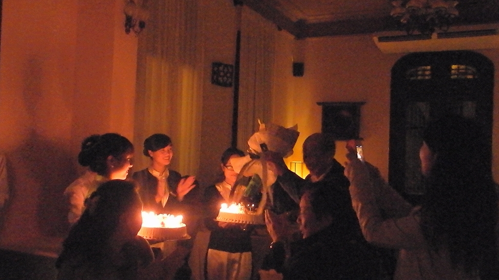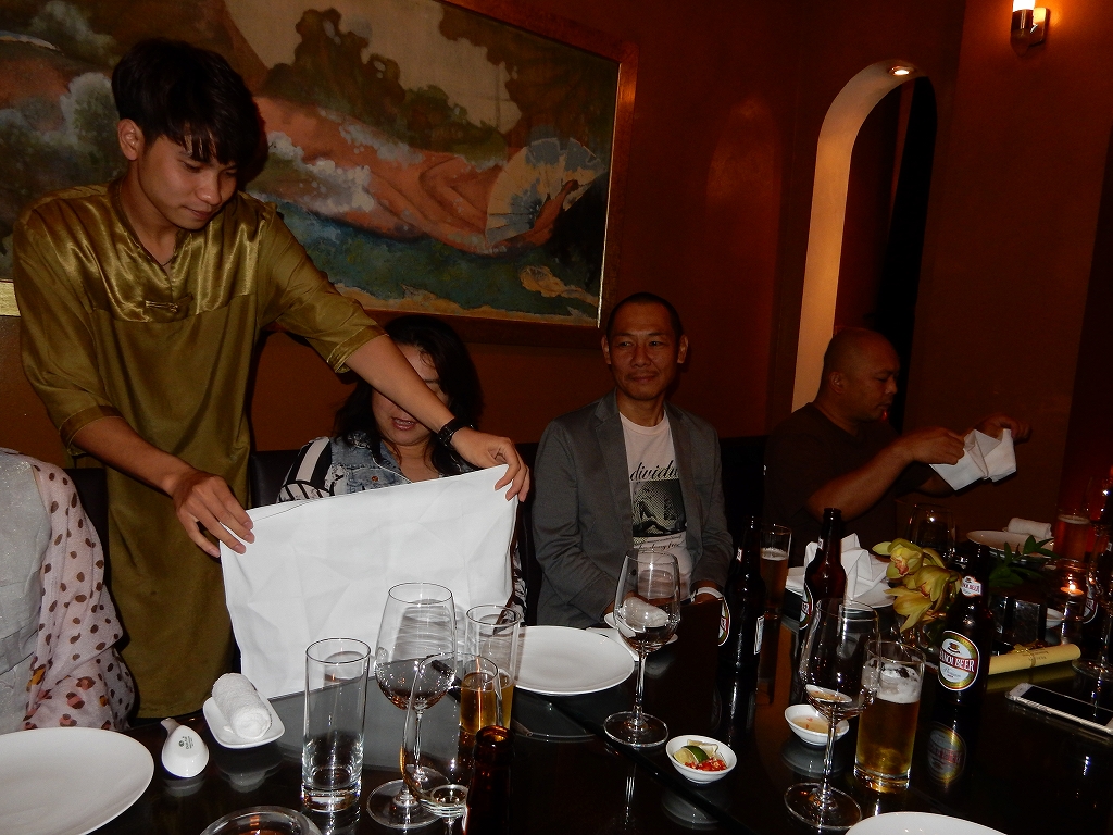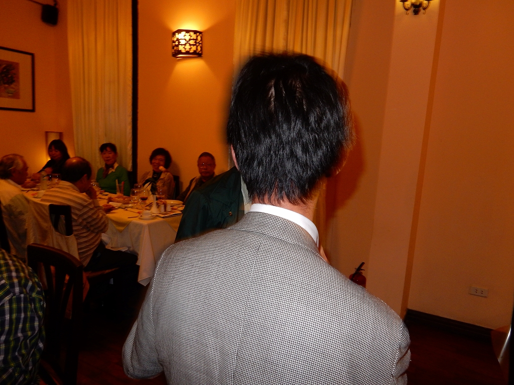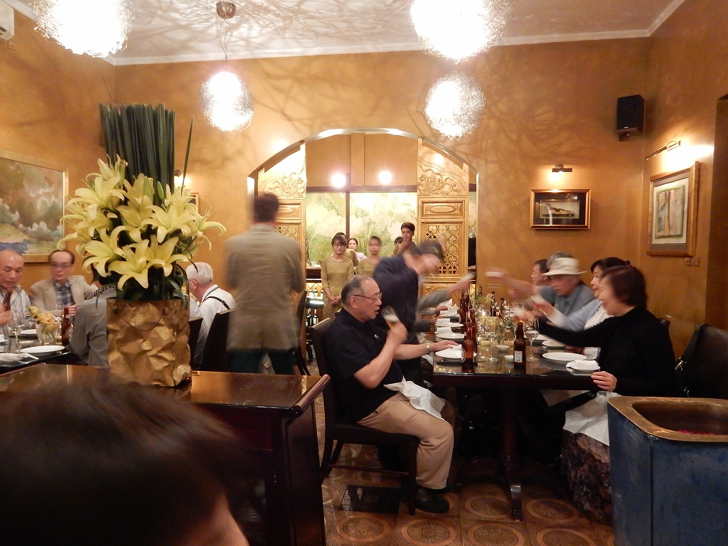 車内で 「月光仮面 」 が倒れたとの報告と支部長の挨拶 夕食は「明(Mingレストラン)?」にて中華料理 |