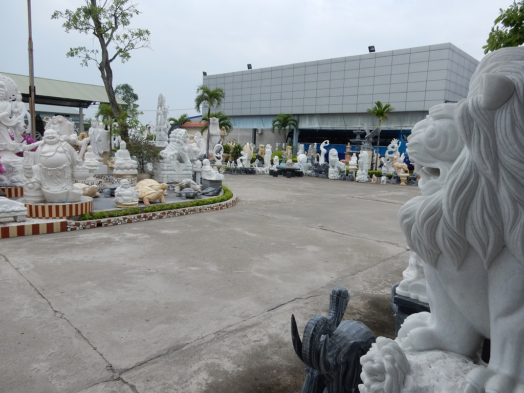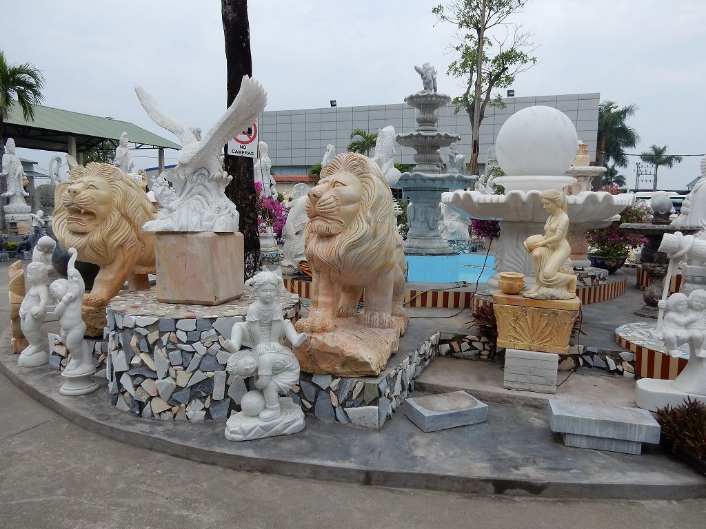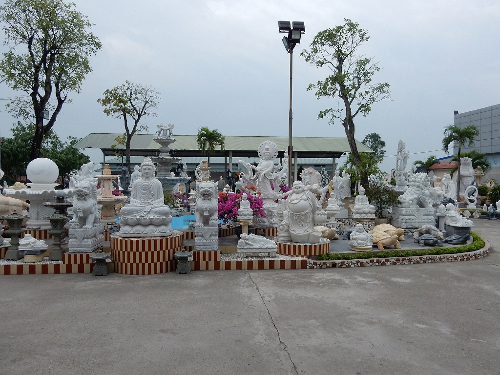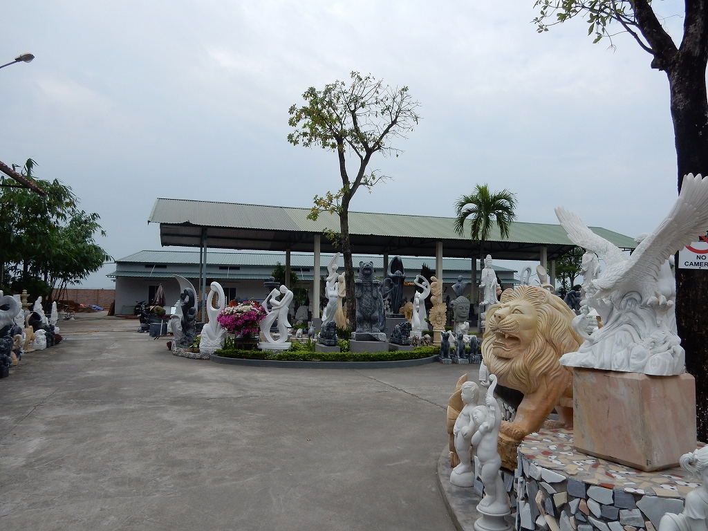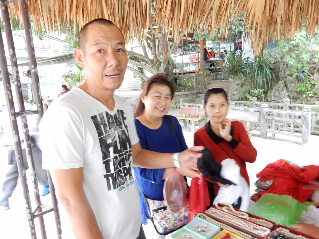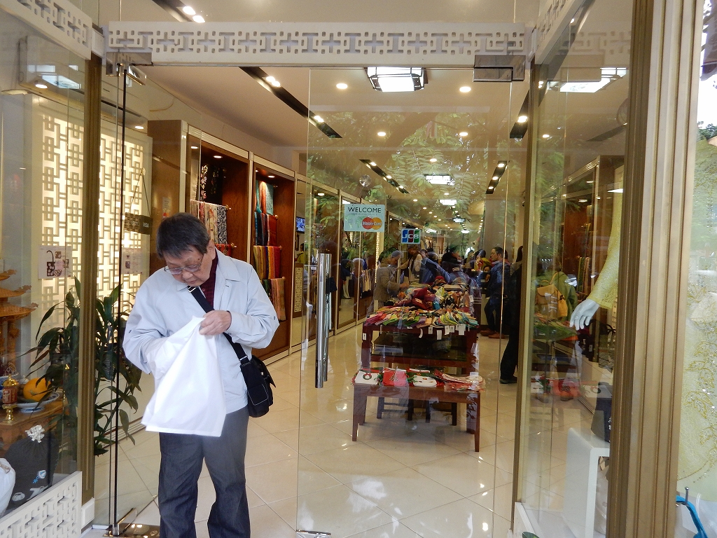 | トイレ休憩でお買物 ベトナム戦争で枯葉剤などの被害を受けた人たち(今は二世)を国でお世話すると共に、 細かな細工職人としての労働の場が与えられている。 |
