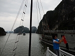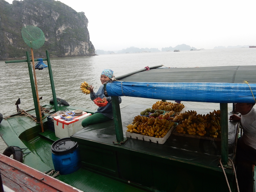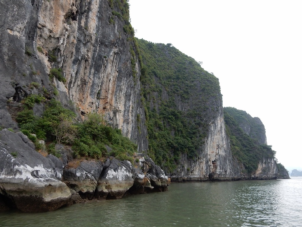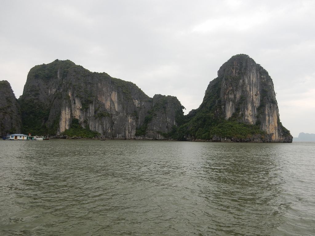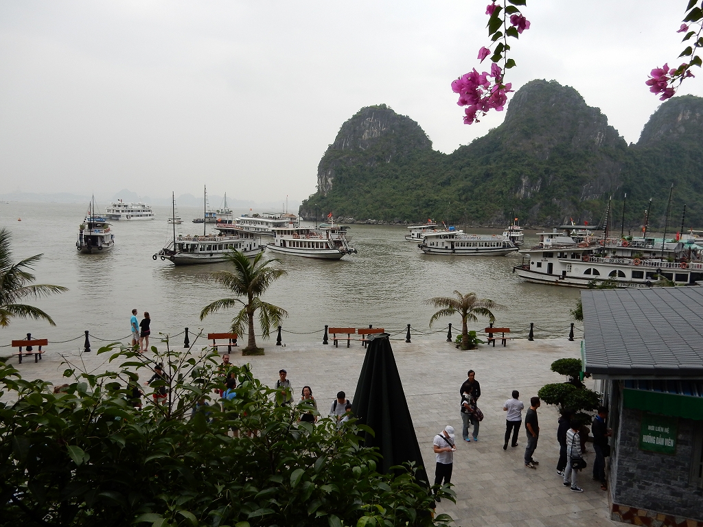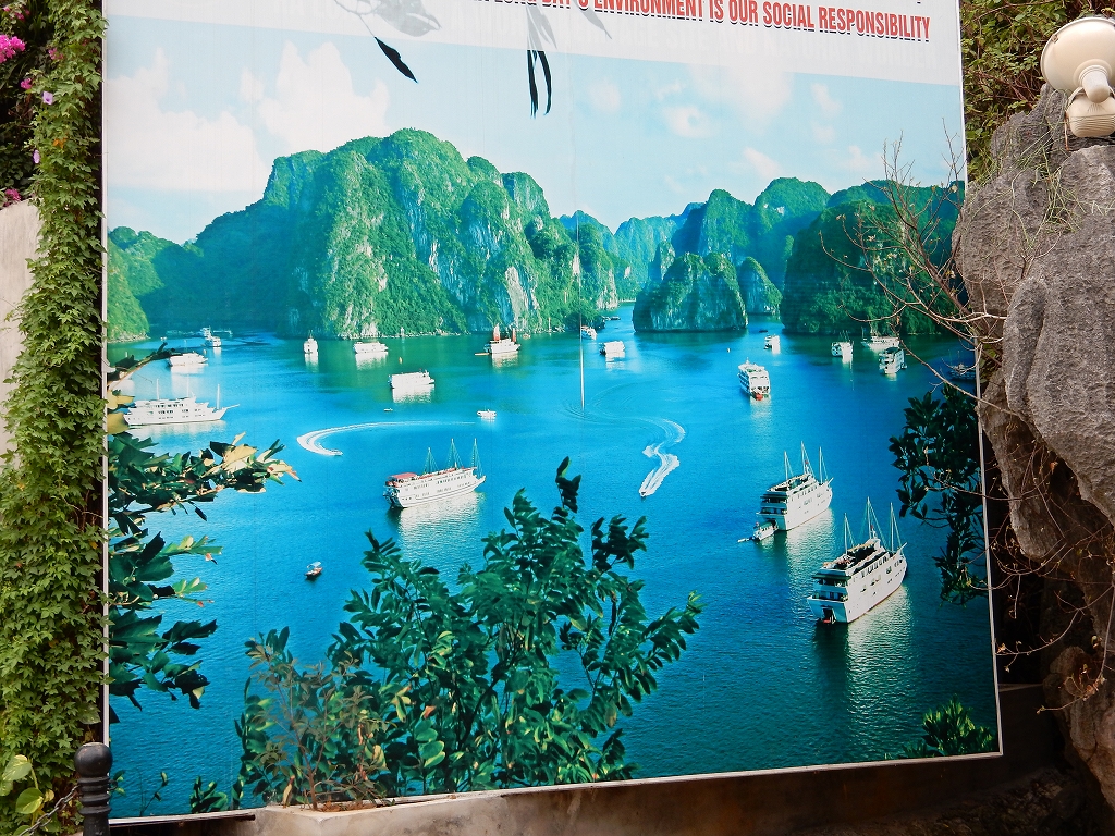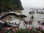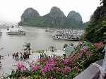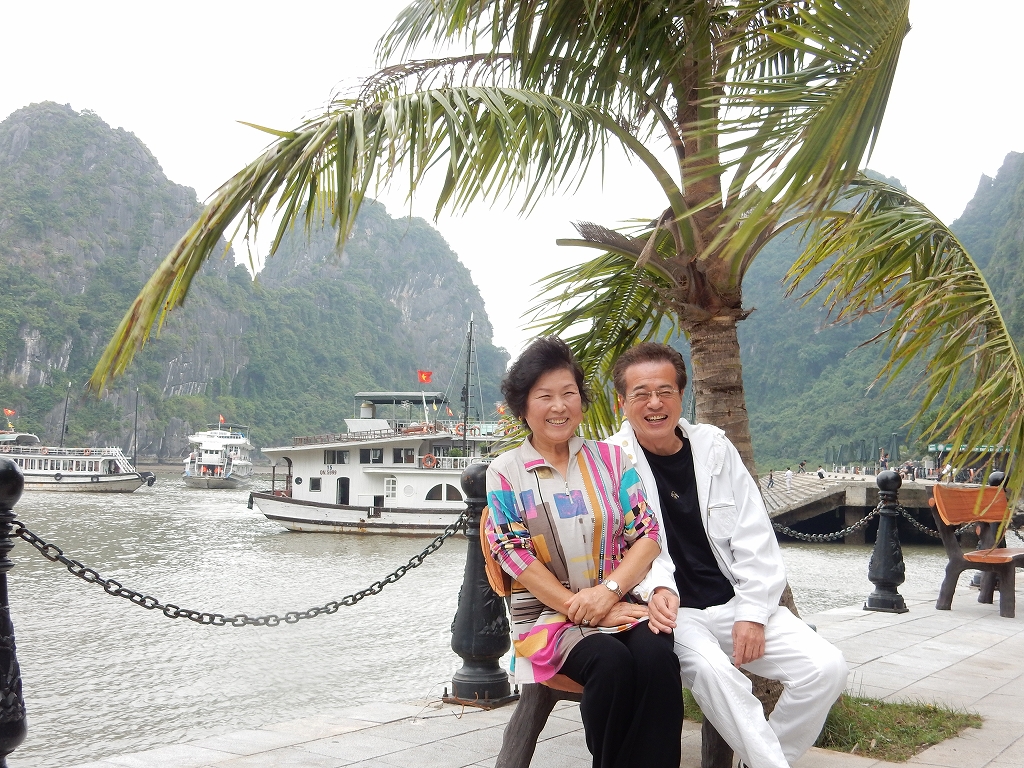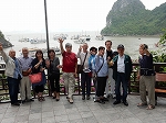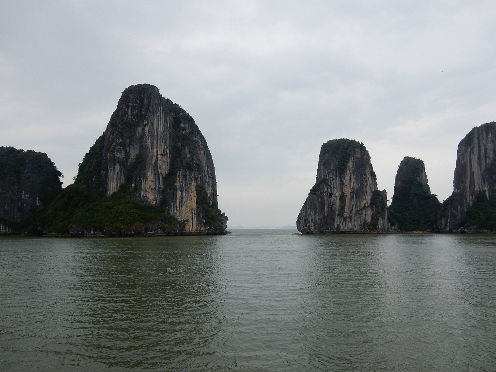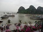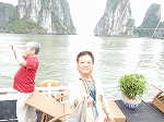 | ハノイから車で4時間ほどで到着した ハロン湾は、石灰岩からなる大小3,000もの島々が奇峰の如くそそり立つ、神秘的な景観が特徴です。 この風景はまさに自然の織りなす驚異であり、水墨画にも似た世界から「海の桂林」とも呼ばれています。 1994年、ユネスコから世界自然遺産に指定されました(2000年に拡大指定)。 ここで、「ハロン」という地名の由来に秘められた次のような伝説をご紹介します。 その昔、隣の大国・中国からの度重なる侵略(日本で言う「元寇」など)に悩まされていた時代、 この地に龍の親子が降り立ち、口から炎を吹いて敵を打ち破り、 さらには吹き出した宝玉が数々の奇岩となって海面に突き刺さり、 その後も長きに渡って外敵の侵入を防いだそうです。 以降、この地はハ(降りる)ロン(龍)と呼ばれるようになりました。 |